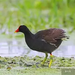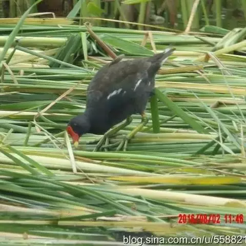 黑水鸡:是鹤形目、秧鸡科的鸟类,共有12个亚种。中型涉禽,体长24-35厘米。嘴长度适中,…