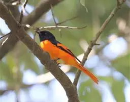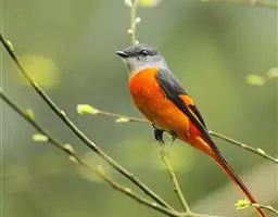 灰喉山椒鸟:共有8个亚种。体长18-22厘米。雄鸟头部和背亮黑色,腰、尾上覆羽和下体朱红色,…