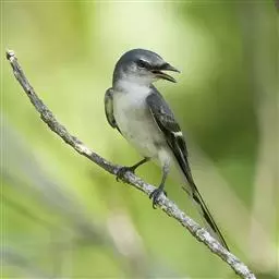 灰山椒鸟:体长18-20厘米。上体灰色或石板灰色,两翅和尾黑色,翅上具斜行白色翼斑,外侧尾羽先端白色。…