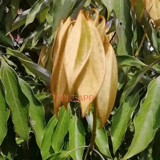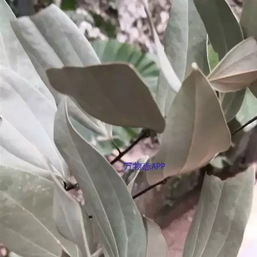 叶互生,椭圆形至披针状椭圆形,长6.6-20厘米,宽3-4.5厘米,两端渐狭,而先端钝,革质,幼叶两面密被金黄色绢毛,老叶上面毛脱落呈绿色而有光泽,下面粉绿,有贴伏黄褐或橙褐色绢毛,离基三出脉,侧脉每边4-5条,第一对侧脉离叶基部6-10毫米处发出,斜展,靠叶缘一侧有4-6条小支脉,先端弧曲联结,其余侧脉自中脉中部或中上部发出,中脉和侧脉在叶两面均突起,横脉两面明显;叶柄长2-3厘米,颇粗壮,初时密被金黄色丝状柔毛,后毛渐脱落变无毛。