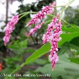 叶片披针形或宽披针形,托叶鞘筒形,疏生伏毛,有睫毛。花序穗状,花苞片漏斗状,有长睫毛,通常红色,苞片内有花3~6朵,花粉红色或白色。花果期8~11月。