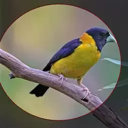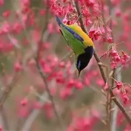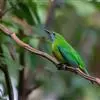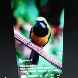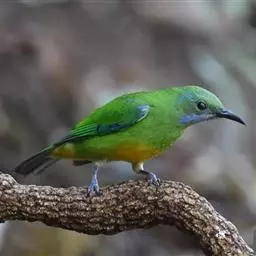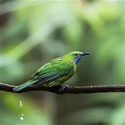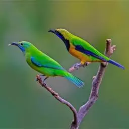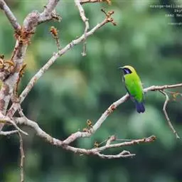 蓝翅叶鹎:小型鸟类,体长15-18厘米。雄鸟通体草绿色,尾蓝绿色,肩和翅亮蓝 色,胸缀有黄色,…