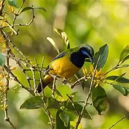 金额叶鹎是和平鸟科、叶鹎属的鸟类。体长16-20厘米。额和头顶前部金桔色,整个上体包括两翅表面草绿色。…