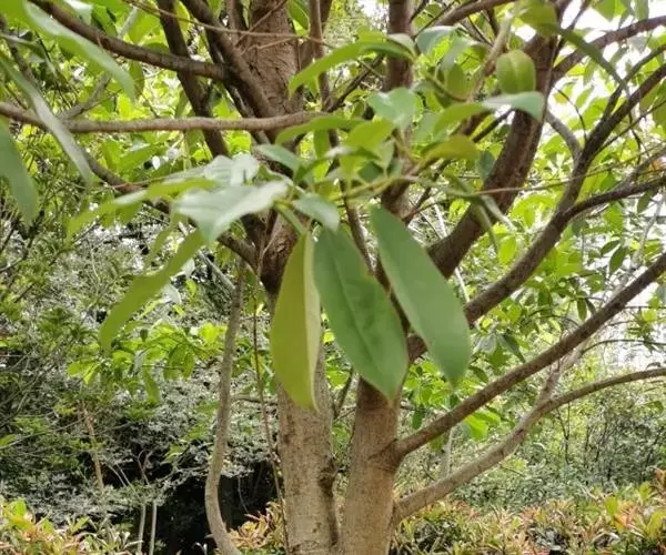 叶薄革质,倒卵形,狭倒卵形或长圆状倒卵形,长 6.5-15(16)厘米,宽3.5-6.5(7)厘米,先端骤狭短渐尖,或短渐尖,尖头钝,基部楔形或阔楔形,上面深绿色,有光泽,侧脉每边9-12(15)条,网脉稀疏;叶柄长1.5-2.5厘米,有明显托叶痕,上面具张开的沟,嫩时被微柔毛,后脱落无毛。