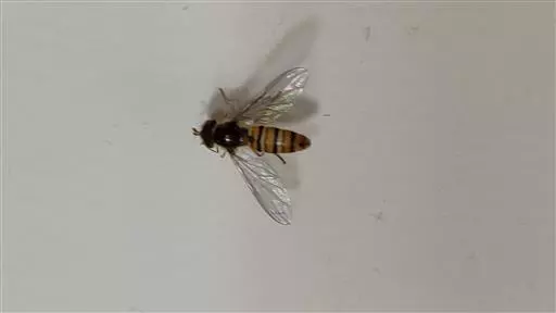 黑带食蚜蝇 体长7-11毫米,翅长6.50-9.50毫米。头黑色,被黑色短毛.头顶宽约为头宽的1/7.单眼区后方密覆黄粉。额大部分黑色覆黄粉,背较长黑毛,端部1/4左右黄色。腹部第五节背片近端部有一长短不定的黑横带,其中央可前伸或与近基部的黑斑相连。