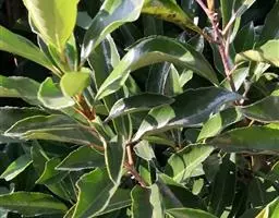 常绿荚蒾(学名:Viburnum sempervirens K. Koch)是忍冬科荚蒾属植物,常绿灌木;高可达4米;当年小枝淡黄色或灰黄色,四角状,散生簇状短糙毛或近无毛。叶革质,干后上面变黑色至黑褐色或灰黑色,椭圆形至椭圆状卵形。复伞形式聚伞花序顶生,无毛或近无毛,直径3-5厘米,有红褐色腺点。果实红色,卵圆形,长约8毫米;核扁圆形,腹面深凹陷,背面凸起,其形如杓,直径3-5毫米。花期5月,果熟期10-12月。