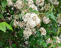 皱叶荚蒾是五福花科荚蒾属的小乔木植物。植株高达4米;叶柄及花序均被由黄白色、黄褐色或红褐色簇状毛组成的厚绒毛;小枝粗壮,稍有棱角;叶革质,卵状矩圆形至卵状披针形;聚伞花序稠密,总花梗粗,四角状,花冠呈现白色,雄蕊高出花冠;果实红色,后变黑色,宽椭圆形,无毛;花期为4-5月;果熟期为9-10月。皱叶荚蒾原产于中国,分布于陕西、湖北、四川及贵州等地。生长于山坡林下或灌丛中,海拔800-2400米。其性喜好阳光,耐半阴,喜温暖,有一定的耐寒性,喜湿润,不耐涝,耐中度盐碱,但在深厚肥沃、排水良好的中性或微酸性沙质土壤中生长更好,耐修剪,生长缓慢。其一般的繁殖方式为播种和扦插繁殖。皱叶荚蒾味苦,性凉。具有清热解毒、凉血止血的功效。可用于湿热痢疾、痈疽疮疖、咳血、吐血、便血、跌打损伤等疾病。皱叶荚蒾给人以郁郁葱葱的景象,全年观叶、春季观花