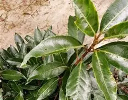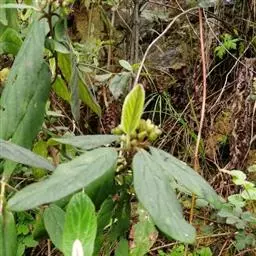 常绿灌木;高可达4米;当年小枝淡黄色或灰黄色,四角状,散生簇状短糙毛或近无毛,二年生小枝紫褐色或灰褐色,近圆柱状。叶革质,干后上面变黑色至黑褐色或灰黑色,椭圆形至椭圆状卵形,较少宽卵形,有时矩圆形或倒披针形,长4-12(-16)厘米,顶端尖或短渐尖,基部渐狭至钝形,有时近圆形,全缘或上部至近顶部具少数浅齿,上面有光泽,下面全面有微细褐色腺点,中脉及侧脉常有疏伏毛,侧脉3-4(-5)对,近缘前互相网结或达至齿端,最下一对伸长而多少呈离基3出脉状,上面深凹陷,下面明显凸起;叶柄带红紫色,长5-15毫米,无毛或散生少数簇状笔。