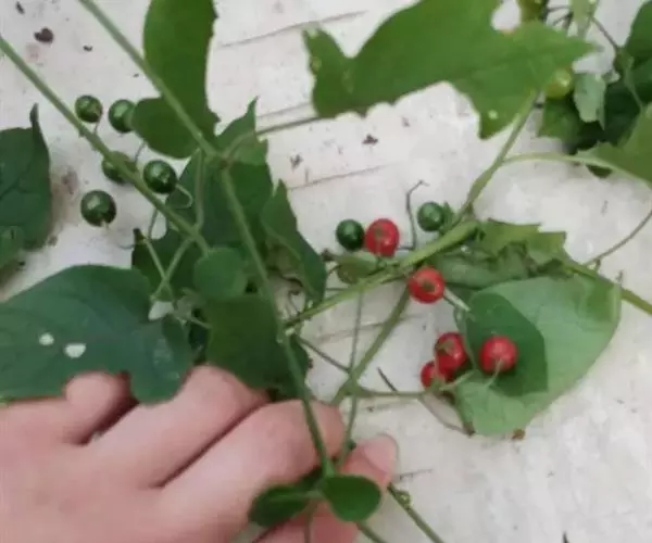白英(Solanum lyratum Thunb.)为茄科草质藤本,叶互生,多数为琴形,两面均被白色发亮的长柔毛,聚伞花序顶生或腋外生,疏花,花冠蓝紫色或白色,花期夏秋,果熟期秋末。浆果球状,成熟时红黑色。喜温暖湿润的环境,生于山谷草地或路旁、田边;国内外均有分布。