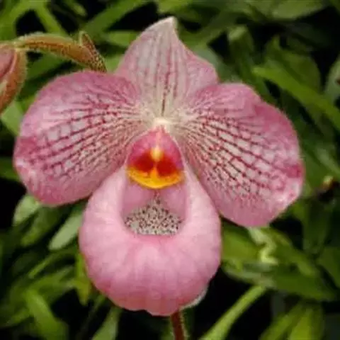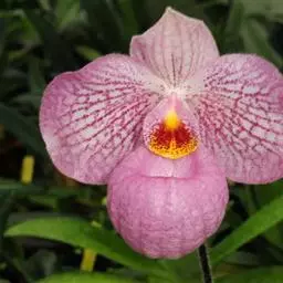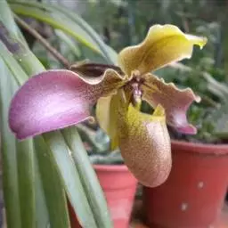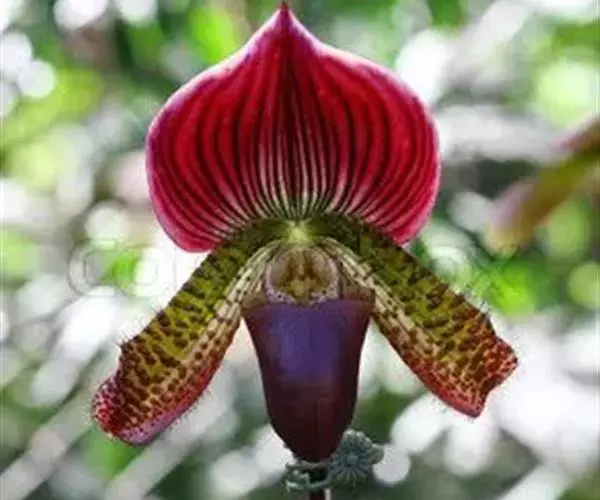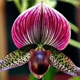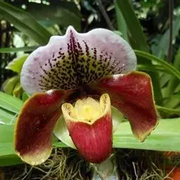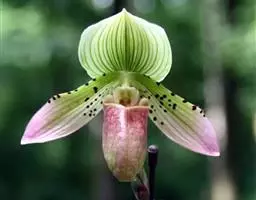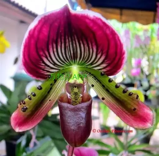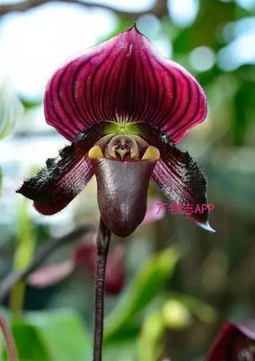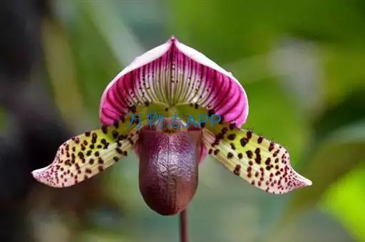 兜兰花比较雅致,色彩比较庄重,色及带有不规则斑点或条纹。花瓣较厚,花朵开放期比较长。属观赏类花草。