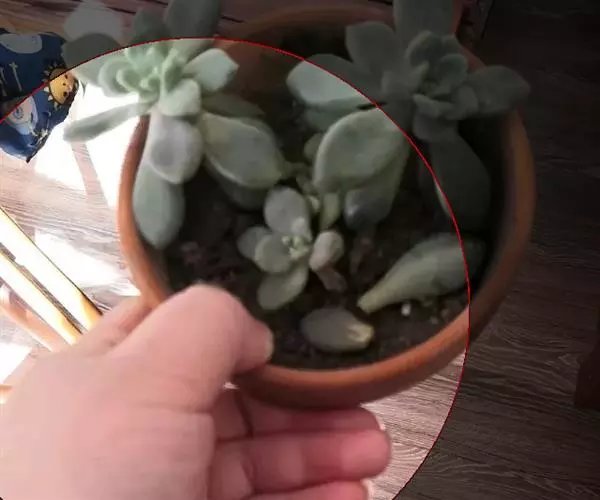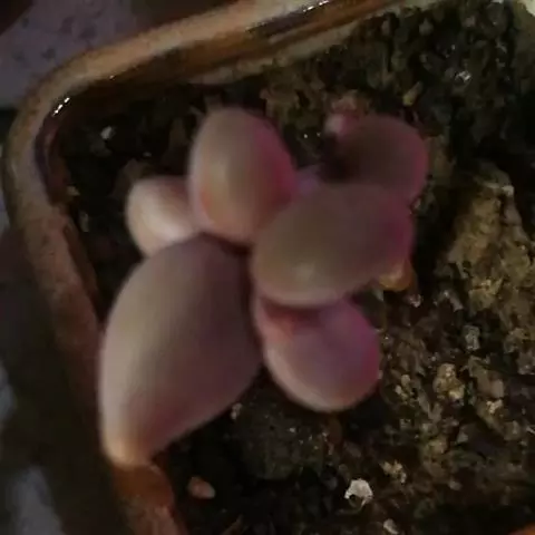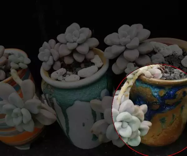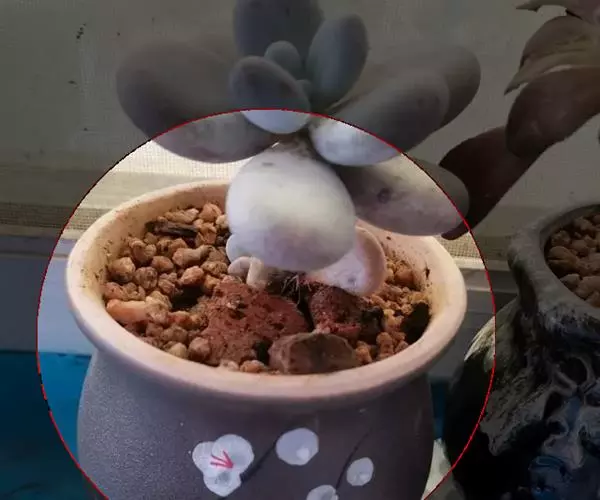 另外,在同样光照充足的养护条件下,桃之卵的叶片颜色比桃美人鲜艳。桃之卵成体的叶片比桃美人成体的更小且偏圆。此外,桃美人的叶片先端有时具凸起的小尖,而桃之卵则不会出现这种情况。