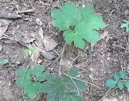植株高2.5-8.5厘米。块茎近椭圆球形或圆锥形,长0.8-1.8厘米,粗0.5-1厘米,有须根。基生叶1-4,有长柄,无毛;叶片带肉质,圆五角形或圆肾形,长0.6-1.4厘米,宽0.9-2.2厘米,基部深心形,三全裂,中全裂片扇状倒卵形,三深裂,裂片浅裂或有圆齿,侧全裂片斜扇形,二裂;叶柄长1.2-4.6厘米。