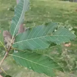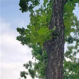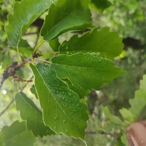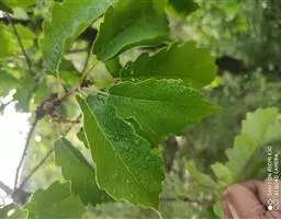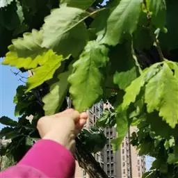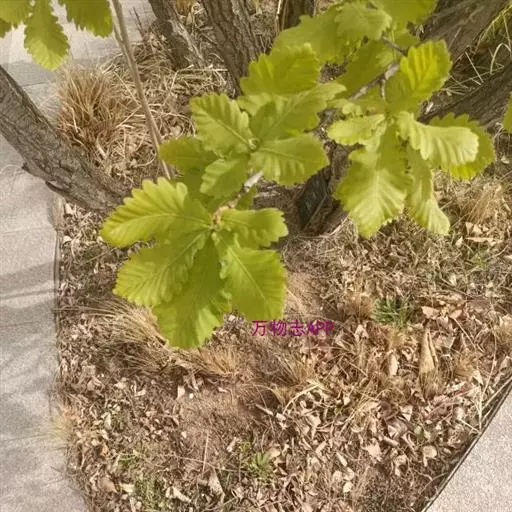 落叶乔木,高达25米,树皮暗灰褐色,深纵裂。小枝粗壮,有沟槽,密被灰黄色星状绒毛。芽 槲树 宽卵形,密被黄褐色绒毛。叶片倒卵形或长倒卵形,长10-30厘米,宽6-20厘米,顶端短钝尖,叶面深绿色,基部耳形,叶缘波状裂片或粗锯齿,幼时被毛,后渐脱落,叶背面密被灰褐色星状绒毛,侧脉每边4-10条;托叶线状披针形,长1.5厘米;叶柄长2-5毫米,密被棕色绒毛。