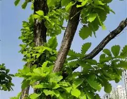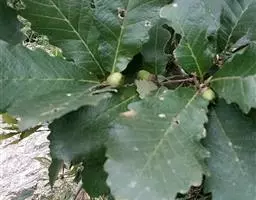 槲(hú)树,壳斗科落叶乔木,别名柞栎、橡树、青岗、金鸡树、大叶波罗等,抗风性较强,槲树的叶、皮和种子都有药用价值,具有活血,利小便,除面上齄赤,菝子淋疾的作用;木材为环孔材,材质坚硬,耐磨损,易翘裂,供坑木、地板等用材;叶含蛋白质14.9%,可饲柞蚕;种子含淀粉58.7%,含单宁5.0%,可酿酒或作饲料;树皮、种子入药作收敛剂;树皮、壳斗可提取栲胶。
