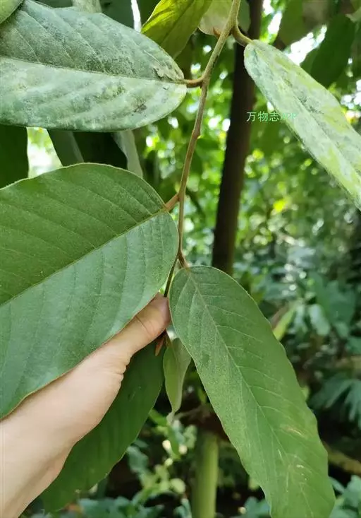 叶革质,椭圆形或椭圆状披针形,长6-20厘米,宽3-8厘米,先端渐尖,基部圆形,侧脉羽状,14-19对,在下面明显突起,网脉明显,被鳞片状毛或绒毛;叶柄长1-3厘米,密被毛;托叶纸质,早落,卵形,基部抱茎,具纵脉5-7条,被鳞片状毛或茸毛。