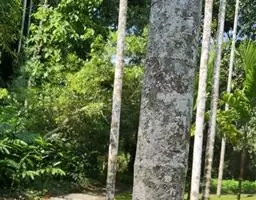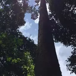 望天树是大乔木,高40(-60)米,胸径60-150厘米;树皮灰色或棕褐色,树干上部的为浅纵裂,下部呈块状剥落。幼枝被鳞片状的茸毛,具圆形皮孔。