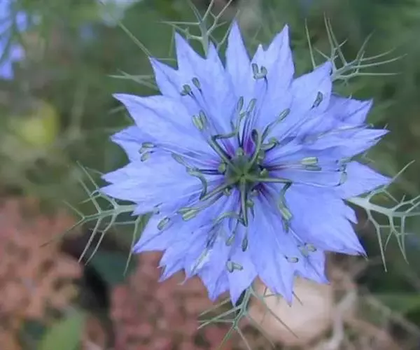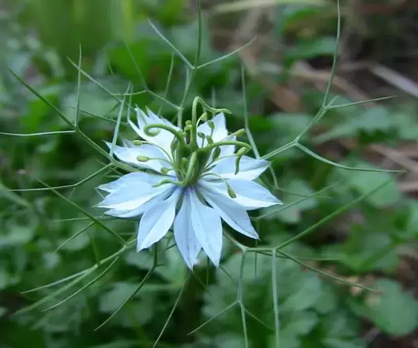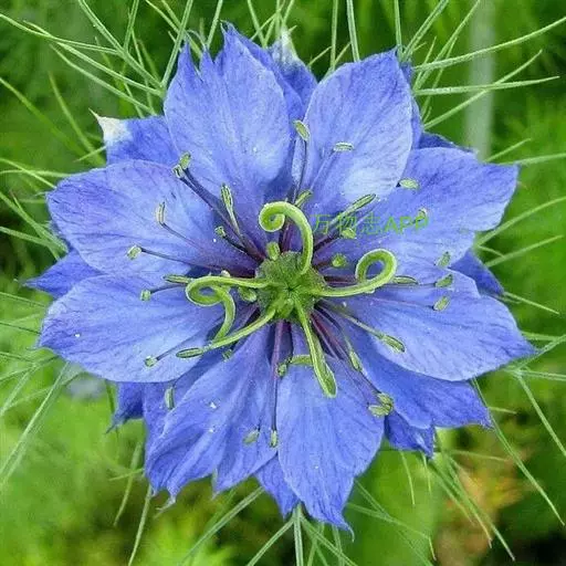 黑种草(学名:Nigella damascena L.)是毛茛科,黑种草属一年生草本,高可达60厘米。茎有疏短毛,中上部多分枝。叶为一回或二回羽状深裂,裂片细,茎下部的叶有柄,花单生枝顶,花萼淡蓝色,形如花瓣,椭圆状卵形,二唇形,雄蕊多数,花药处部钝或微渐尖;果膨胀,基部合生几达中部而形成蒴果,种子多数,扁三棱形,黑色,6-7月开花,8月结果。