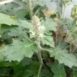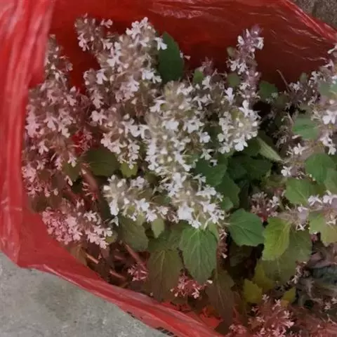 叶对生;叶片椭圆状卵圆形,纸质,绿色。轮伞花序6朵以上,密集成顶生穗状花序,花淡红色或蓝色。