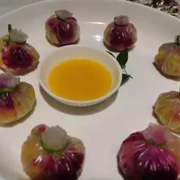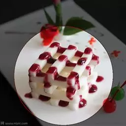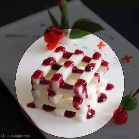 7、最后将山药泥按个人喜好整出形状,淋上蓝莓酱即可。