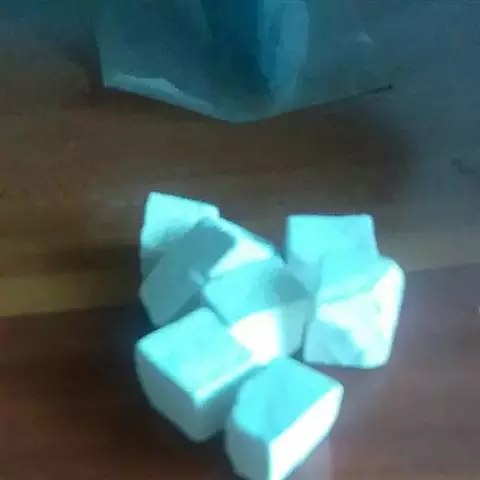 4、山药蒸好后,用筷子戳一下,如果中间没有硬芯,能轻松穿透即可拿出,稍微冷却一下。趁着山药温热的时候,放在案板上,先用刀按压碎,再放入碗中用勺子压成更细腻的泥状,不要有结块。