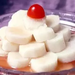 3、将山药捞出后凉凉,在冰糖水中浸泡1小时左右;