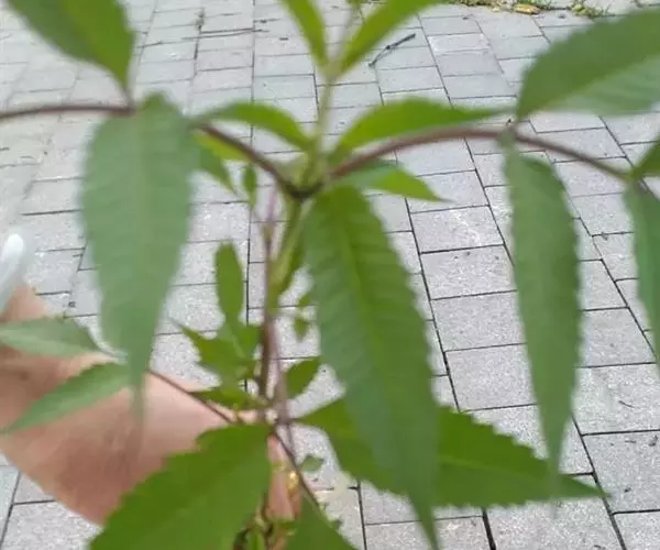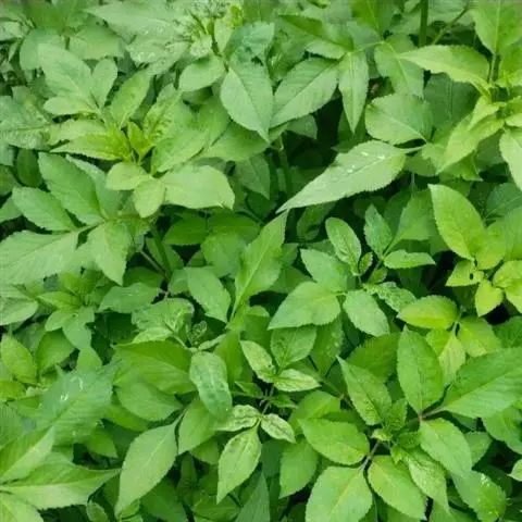 一年生草本。茎直立,分枝,高20-120厘米,被疏毛或无毛,常带紫色。叶对生,具柄,为一回羽状复叶,小叶3-5枚,披针形,长3-10厘米,宽1-3厘米,先端渐尖,边缘有粗锯齿,通常背面被稀疏短柔毛,至少顶生者具明显的柄。