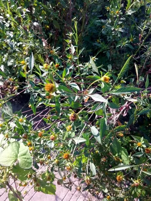 大狼杷草(学名:Bidens frondosa L.),一年生草本。茎直立,分枝,常带紫色。叶对生,具柄,为一回羽状复叶,披针形,先端渐尖,边缘有粗锯齿,通常背面被稀疏短柔毛,至少顶生者具明显的柄。头状花序单生茎端和枝端。总苞钟状或半球形,披针形或匙状倒披针形,叶状,边缘有缘毛,内层苞片长圆形,无舌状花或舌状花不发育,极不明显,筒状花两性;瘦果扁平,狭楔形,近无毛或是糙伏毛,顶端芒刺2枚,长约2.5毫米,有倒刺毛。