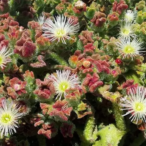 冰叶日中花(学名:Mesembryanthemum crystallinum Linn.)是番杏科、日中花属的一年生或二年生草本。茎匍匐,叶互生,扁平,肉质,卵形或长匙形,紧抱茎,有发亮颗粒。花单个腋生,几无花梗;花瓣多数,比萼片长,花白色或浅玫瑰红色,果实为蒴果。