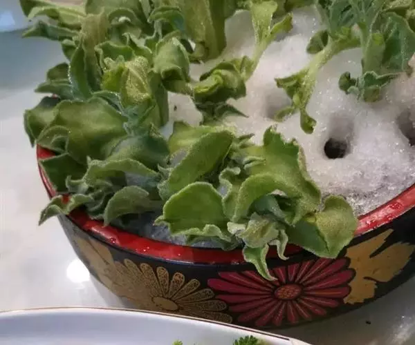 水肥管理:定苗后需注意控水,一般定植后10天内不用浇水,后期应在叶片略显萎缩时才补充水分,以浇透为宜。适度的控制水分,有利于冰叶日中花茎叶部位的结晶体的形成,提高商品性。若栽培期间水分过大,则形成的晶体颗粒较少,自身咸味淡,口感差。土耕栽培在后期需要不断补充肥料,仅仅依靠底肥就能满足生长需要。
