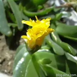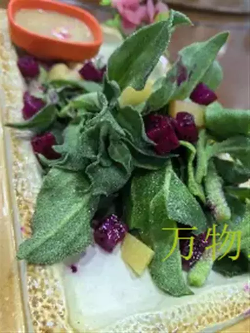 冰叶日中花栽培种 冰叶日中花俗称冰菜,含有多种氨基酸、黄酮类化合物等其他蔬菜中少有的营养物质,其酸味是天然的苹果酸味,富含钠、钾、胡萝卜素等矿物质,是一种高营养价值的蔬菜。冰菜表面覆有一层形似“冰晶”的泡状细胞,其中富含天然植物盐,对高血压、糖尿病、高血脂患者有好处;因其富含多种氨基酸,脑力劳动者及青少年多食用可以减缓脑细胞的老化速度,强化脑细胞功能。