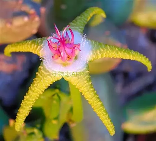 花单个腋生,雏菊状,直径约2.5厘米,几无梗;花瓣多数,线形,比萼片长,带白色或浅玫瑰红色;花柱5,丝状,柱头5。蒴果5室,裂瓣脊有翅。