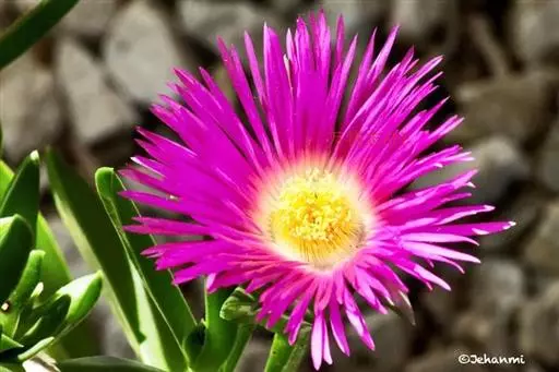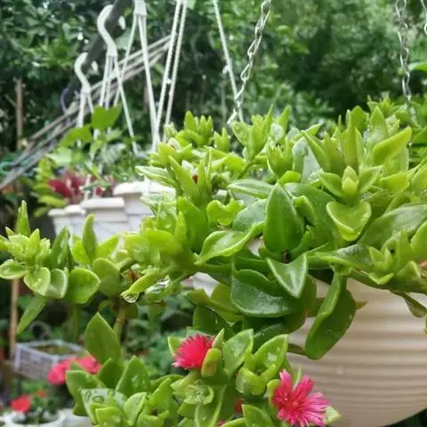 冰叶日中花叶形奇特,花色艳丽,茎叶表面上还有一粒粒的泡状小隆起,形似水晶一般,十分美丽,具有一定的观赏价值。