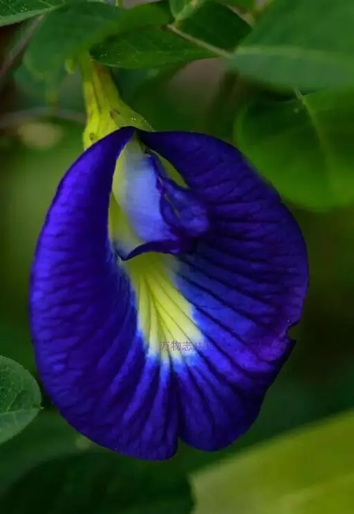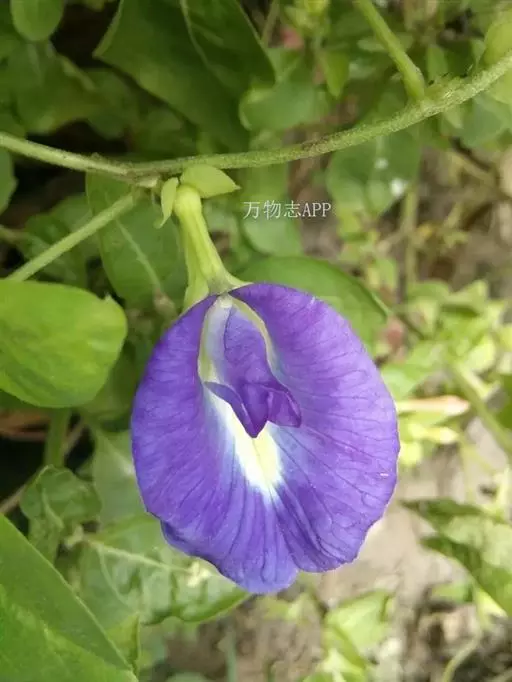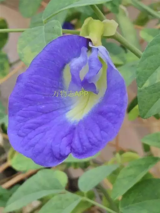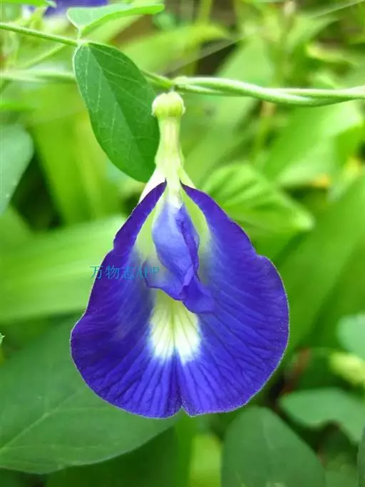 花大,单朵腋生;苞片2,披针形;小苞片大,膜质,近圆形,绿色,直径5-8毫米,有明显的网脉;花萼膜质,长1.5-2厘米,有纵脉,5裂,裂片披针形,长不及萼管的1/2;先端具凸尖;花冠蓝色、粉红色或白色,长可达5.5厘米,旗瓣宽倒卵形,直径约3厘米,中央有一白色或橙黄色浅晕,基部渐狭,具短瓣柄,翼瓣与龙骨瓣远较旗瓣为小,均具柄,翼瓣倒卵状长圆形,龙骨瓣椭圆形;雄蕊二体;子房被短柔毛。荚果长5-11厘米,宽约1厘米,扁平,具长喙,有种子6-10颗;种子长圆形,长约6毫米,宽约4毫米,黑色,具明显种阜。花、果期7-11月。