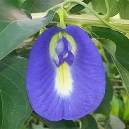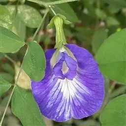 蝶豆(学名:Clitoria ternatea Linn.)是豆科蝶豆属植物。攀援状草质藤本。茎、小枝细弱,被脱落性贴伏短柔毛。叶长2.5-5厘米;托叶小,线形,长2-5毫米;叶柄长1.5-3厘米。花大,单朵腋生;苞片2,披针形。荚果长5-11厘米,宽约1厘米;种子长圆形,长约6毫米,宽约4毫米,黑色,具明显种阜。花、果期7-11月。
