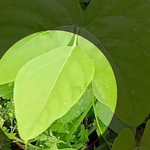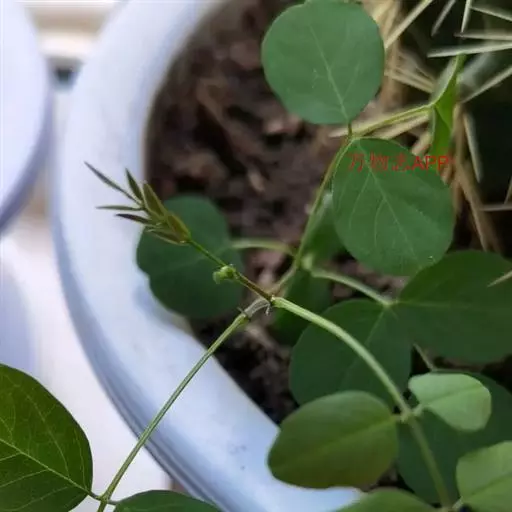 攀援状草质藤本。茎、小枝细弱,被脱落性贴伏短柔毛。叶长2.5-5厘米;托叶小,线形,长2-5毫米;叶柄长1.5-3厘米;总叶轴上面具细沟纹;小叶5-7,但通常为5,薄纸质或近膜质,宽椭圆形或有时近卵形,长2.5-5厘米.宽1.5-3.5厘米,先端钝,微凹,常具细微的小凸尖,基部钝,两面疏被贴伏的短柔毛或有时无毛,干后带绿色或绿褐色;小托叶小,刚毛状;小叶柄长1-2毫米,和叶轴均被短柔毛。