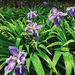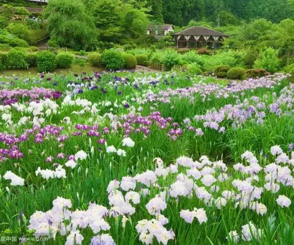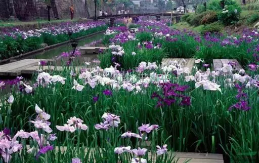 花菖蒲在湿地公园的配置中,常成片群植,在碧波荡漾中,彩蝶飞舞,风景格外秀丽。在河岸浅谈与黄菖蒲、路易斯安娜鸢尾,可使花期前后相续2个月左右,花菖蒲叶片比较柔弱,在庭院水池岸边,水塘石隙点缀数丛,绿叶衬托的花冠,更显得婀娜多姿。