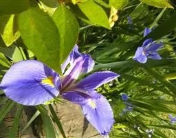 双色野鸢尾为多年生草本植物,叶子呈剑状淡绿色。…