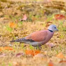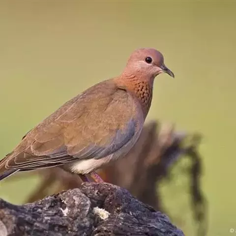 山斑鸠,是鸽形目鸽鸠科斑鸠属鸟类,又名金背斑鸠、棕背斑鸠、山鸠、金背鸠、麒麟斑、麒麟鸠、东方斑鸠、绿斑鸠、山鸽子。山斑鸠颈侧具明显黑白色条纹的块状斑,上体深褐色、具扇贝状斑纹,羽缘棕色,尾羽近黑色,下体多偏粉色。虹膜黄色,喙灰色,脚粉色。山斑鸠是留鸟,在中国常见且分布广泛。此外,还分布于不丹、尼泊尔、巴基斯坦、印度、日本等国。栖息于针阔混交林、季风常绿阔叶林、果园及农耕区,多成对活动于开阔农耕区、村舍、寺院周围及防火林带。取食于地面,主要觅食植物种子、果实、嫩芽等,也吃昆虫。山斑鸠飞翔时鼓翼快速,叫声为反复而低沉的“咕咕咕”声。繁殖期在4-7月,营巢于林中树上,通常一年繁殖2窝,窝卵数2枚,由雌雄亲鸟轮流孵卵,孵化期18~19天。山斑鸠的肉、卵可食,肉入药可益气明目、强筋壮骨,治久病气虚、衰弱无力、两目昏暗等病症。山斑鸠啄食杂草种子,对农田清除杂草有益;但有时也刨食农作物及树的种子。山斑鸠