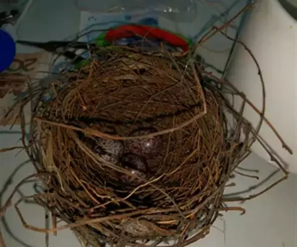 花紫黑色;花梗长2~4cm;花被管钟状,直径1~1.5cm,内壁有疏离纵行脊皱;花被裂片三角状卵形,长约7mm,宽约10mm,直立或近平展;雄蕊着的生子房中部,花丝与花药近等长或稍长,药隔突出,短锥形;子房半下位或几近上位,球状,花柱较短,顶端2裂,柱头侧生。果近球状,直径约1.5cm,棕黄色。花期4~5月。