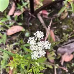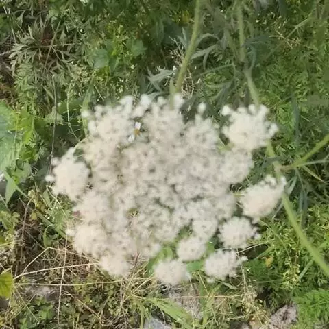 复伞形花序顶生,密生浓密的长柔毛,径3-6厘米,花序梗有时分枝,长2-6厘米;伞辐8-16,不等长,长1-3厘米;无总苞片;小总苞数片,线状披针形,边缘及背部密被柔毛;小伞形花序有花,15-20,花白色;萼齿5,卵状披针形,长0.5-1毫米,被柔毛;花瓣白色或带堇色;花柱基短圆锥形。