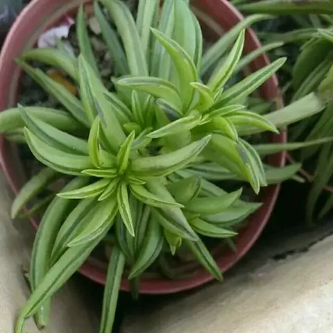 西瓜皮椒草还可进行分株繁殖,时间在春季的3-4月。挑选母株根茎处发有新芽的植株,结合翻盆换土,取出全部植株,别去附着土,保护好母株和新芽的根系,用锋利快刀,按照新芽的分布位置,切取新芽进行分株繁殖。不论母株或子株,一旦切开,切口处都要及时涂抹草木灰进行消毒和干燥处理,最后进行分株苗的栽培。栽培新苗株,要用盛有经过严格消毒处理的素砂土木箱苗床。株行距以叶片不重叠为宜,其他的技术性操作管理与叶片扦插相同。分株苗恢复生长后,最好用森林腐叶土加足基肥,重新上盆定植。这样,对分株苗的生长发育,提早成形,大有好处。