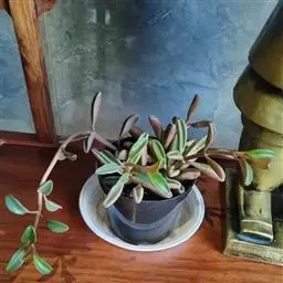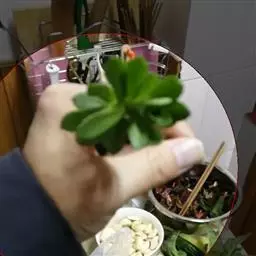 插穗生根过程:西瓜皮椒草的叶片,通过扦插繁殖的生根过程为:一是切口愈合。叶片切离母体后,体内本身的养分,与扦插后进行的微弱光合作用所造成的少量养分,除供插穗自身活命外,大部分都输送到切口,满足伤口愈合的需要。二是根原体的产生。通过强烈的刺激,插穗切口死细胞和伤细胞的原生质,经分解作用而分化和增生,集中养分,促使根的原始体产生,也就是通常所说的"根的生长点是不定根的生长发育。大约经过20-30天的培养,叶柄基部和叶脉所产生的根原体,在湿润的土壤中,不断地生长发育,产生不定根群,从而增加了对水分和养分的吸收能力,地上部分开始萌发新芽。两个月后便可从苗床中提取幼苗进行定植栽培。