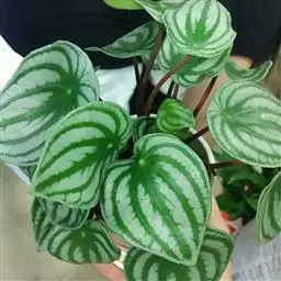 西瓜皮椒草(学名:Peperomia argyreia (Hook.f.) E.Morren)是胡椒科草胡椒属植物。多年常绿草木,株高约15-20厘米。根茎顶端从生状抽生长长的叶柄,红褐色的叶柄上端着生单叶。叶片卵圆形至心脏形,向叶柄内反卷成半圆形。穗状花序,花小,白色。 [1-2]