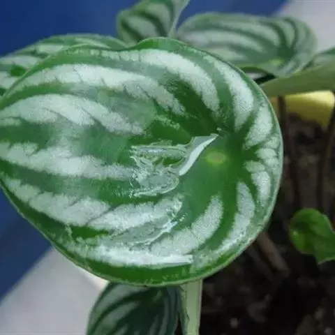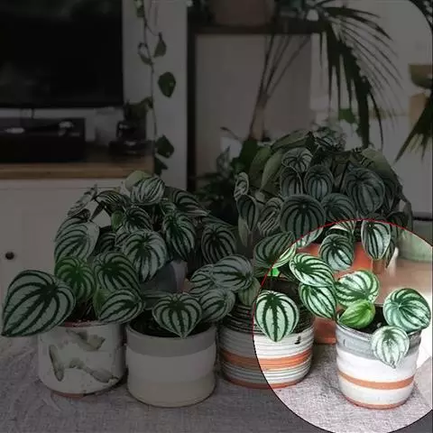 西瓜皮椒草株形玲珑,秀叶丛生,形态圆润,绿如翡翠,白若美玉,椎洁娇莹;西瓜皮椒草,宽脉明显,八条均分,浅地深脉,富有光泽,状若西瓜,可以较长时间放在室内莳养,是室内绿化、美化装饰的观叶植物。