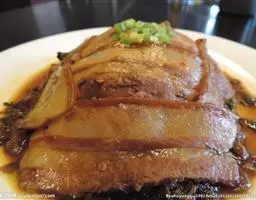 梅菜扣肉,汉族传统名菜,属客家菜 。制作材料有五花肉、梅菜、葱白、姜片等。