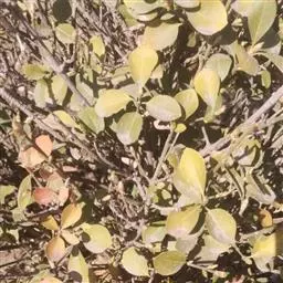 叶薄革质,阔椭圆形或阔卵形,长7-10毫米,宽5-7毫米,叶面无光或光亮,侧脉明显凸出;叶柄长1-2毫米,上面被毛。