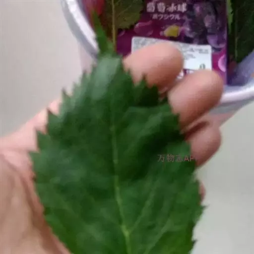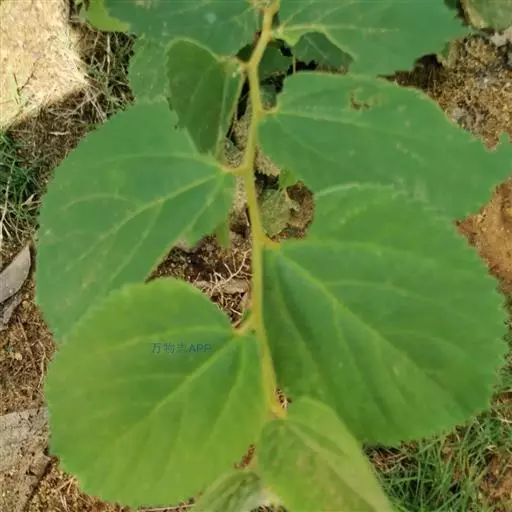 叶纸质,宽卵形至长卵形,长3-10厘米,宽2-5厘米,先端渐尖至尾状渐尖,基部不对称,楔形、圆形或截形,边缘有不整齐的锯齿,基部3出脉,侧出的一对近直伸达叶的上部,侧脉4-6对,叶面绿,幼时被短硬毛,后脱落常残留有圆点,光滑或稍粗糙,叶背淡绿,在脉上有稀疏的或较密的短柔毛,脉腋有簇毛,其余近光滑无毛;叶柄长5-15毫米,被短柔毛。