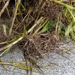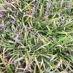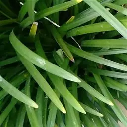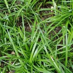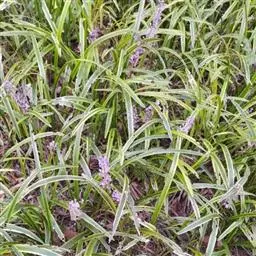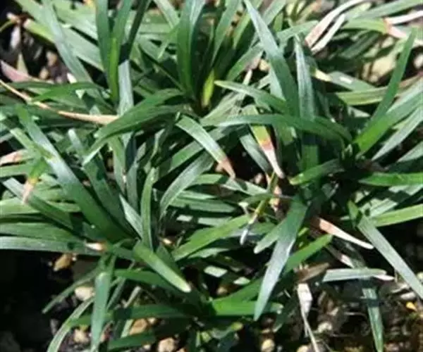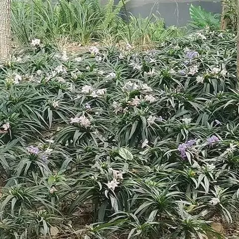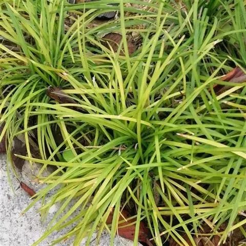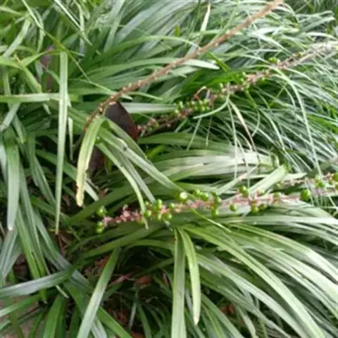 玉龙草,具有块根,根系发达,根长可及20公分以上,乳白色略粗,几无茎,植株矮小,簇生成半球团状,高约10公分。 单叶,丛生,叶片长10~20公分,宽0.2~0.3公分,狭线形,叶基锐,叶尖钝,叶缘粗糙,墨绿色,上下表面光滑,下表面多少带白粉状,脉5~7条。 总状花序,每苞花10朵,花茎直立,淡紫色至白色。 蒴果,径约0.5公分,种子深蓝色。生长及分生迅速,栽植地面可迅速长成一片浓密加地毡状的草皮,对水土保持有特别优良之效果。耐阴性强、且较一般草皮耐践踏,是极佳之地被植材。