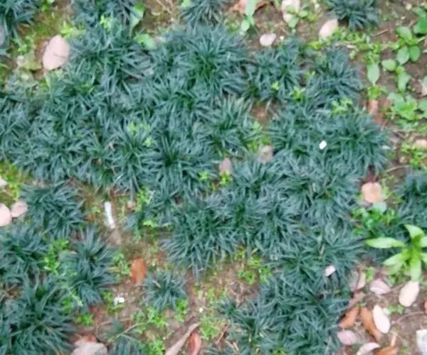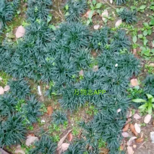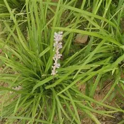 玉龙草为多年生草本,具有块根,根系发达,根长可及20公分以上,乳白色略粗,几无茎,植株矮小,簇生成半球团状,高约10公分。 单叶,丛生,叶片长10~20公分,宽0.2~0.3公分,狭线形,叶基锐,叶尖钝,叶缘粗糙,墨绿色,上下表面光滑,下表面多少带白粉状,脉5~7条。 总状花序,每苞花10朵,花茎直立,淡紫色至白色。 蒴果,径约0.5公分,种子深蓝色。另有白斑变种银纹沿阶草,别称银龙,叶长45~90公分,有多数白斑沿叶脉纵走,叶面有毛不光滑。