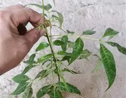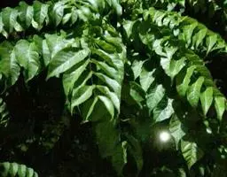 叶为2-3回奇数羽状复叶,长20-40厘米;小叶对生,卵形、椭圆形至披针形,顶生一片通常略大,长3-7厘米,宽2-3厘米,先端短渐尖,基部楔形或宽楔形,多少偏斜,边缘有钝锯齿,幼时被星状毛,后两面均无毛,侧脉每边12-16条,广展,向上斜举。